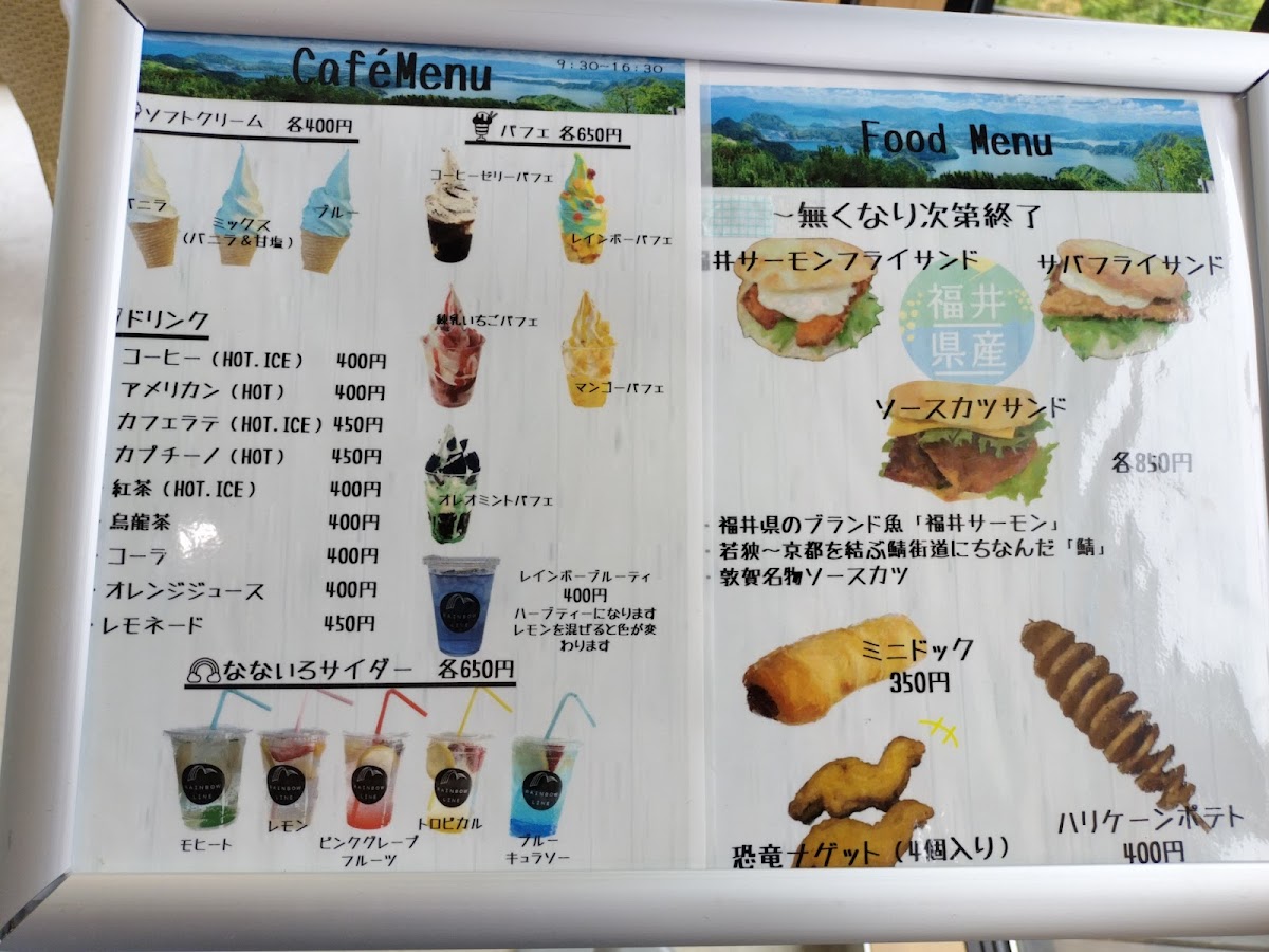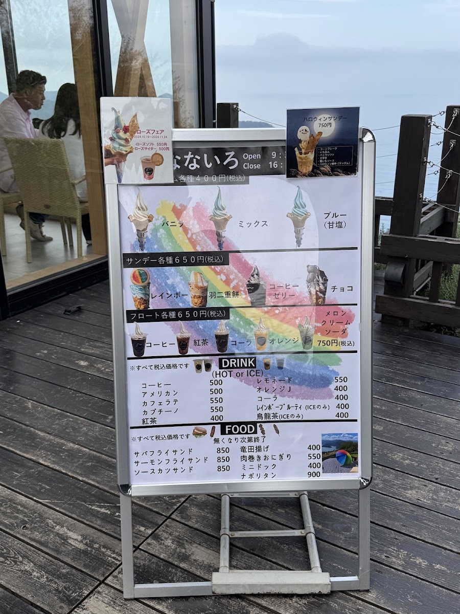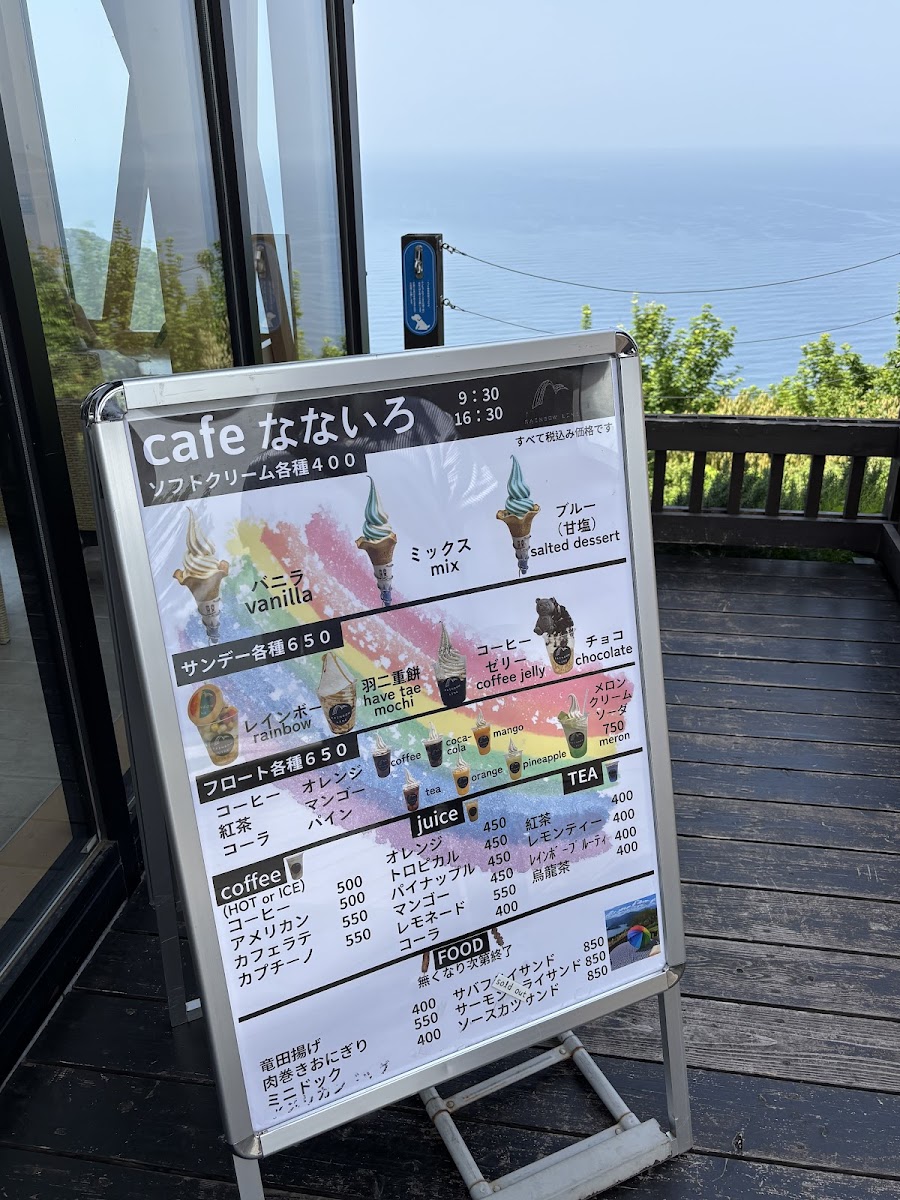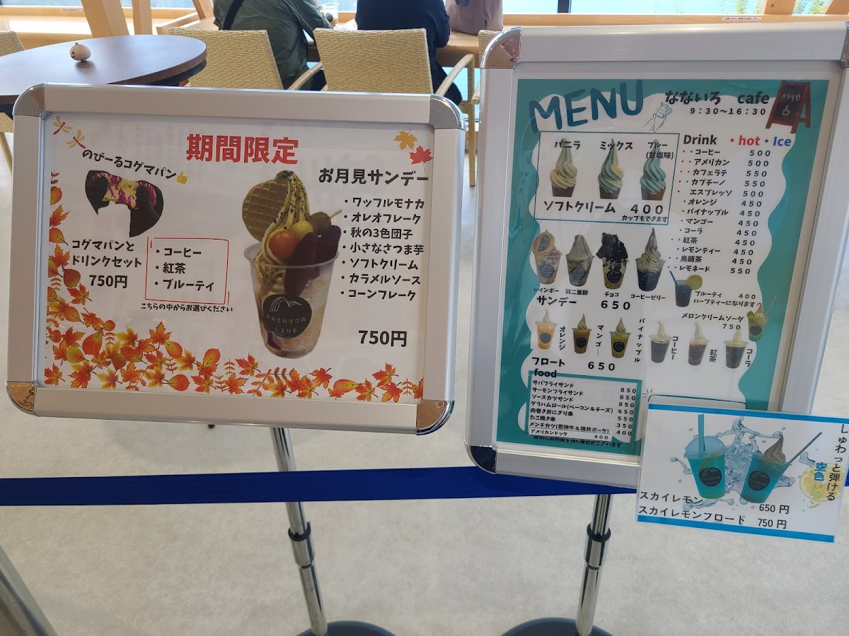 Welcome to Cafe Nanairo, a hidden gem set atop the breathtaking Rainbow Line in Fukui, Japan. This charming cafe offers a delightful assortment of local sandwiches, refreshing drinks, and whimsical soft-serve ice cream, all presented in vibrant colors. The glass-enclosed interior promises stunning views, perfect for sunny days, while the cozy outdoor terrace provides a tranquil ambiance for both food and nature lovers.